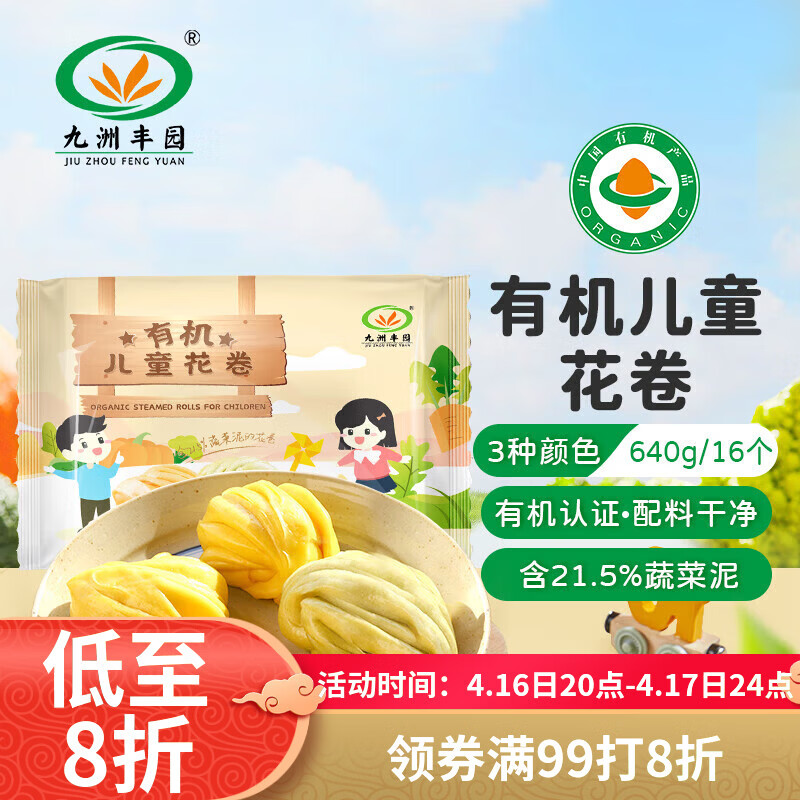 九洲丰园有机儿童花卷640g/16只 速冻宝宝儿童早餐食品半成品早饭面点速食
