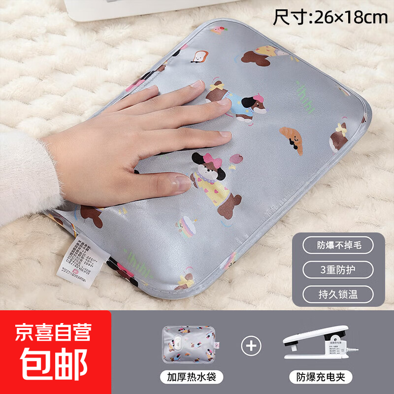 淘小沐仿兔毛电热水袋国标充电款安全防爆大容量暖被暖脚 银灰腊肠狗【丝光面料】