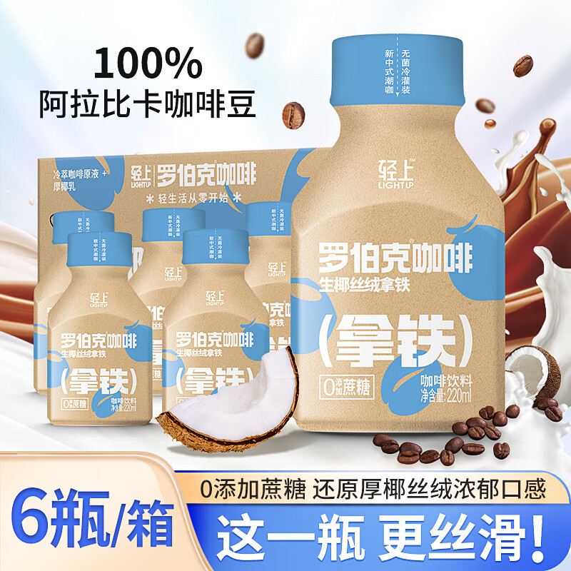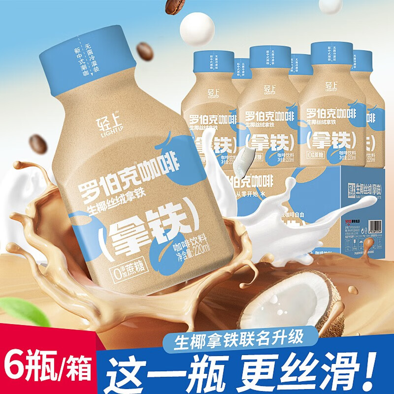 轻上【年货礼盒】轻上椰汁0糖生椰厚椰乳 植物奶蛋白饮料 生椰拿铁220ml*6瓶