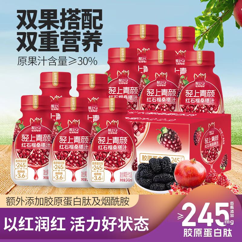 轻上【年货礼盒】轻上椰汁0糖生椰1L大瓶东南亚进口椰子汁饮料整箱 红石榴桑椹汁245ml*10瓶
