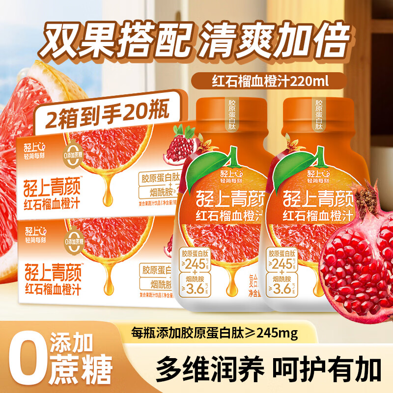 轻上【年货礼盒】轻上椰汁0糖生椰1L大瓶东南亚进口椰子汁饮料整箱 红石榴血橙汁245ml*10瓶