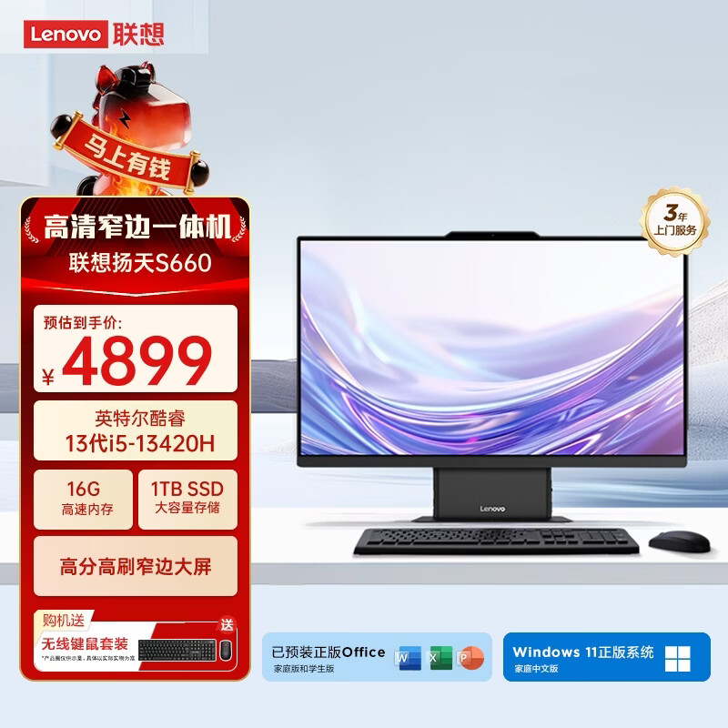 联想扬天S660 一体机电脑27英寸商用办公台式电脑主机(酷睿i5-13420H 16G DDR5 1TB)国家补贴