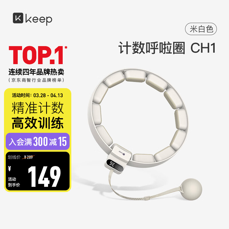 Keep计数呼啦圈CH1可调节瘦腰塑形呼啦圈减肥神器智能款瘦肚子 米白色