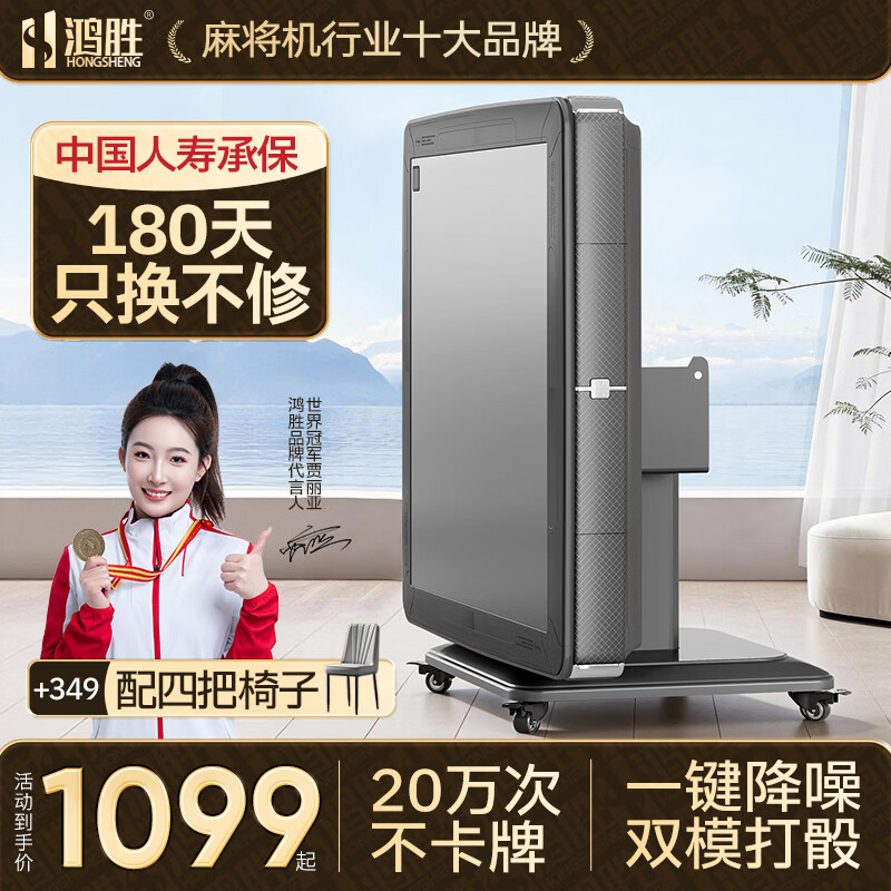 鸿胜全自动麻将机餐桌家用两用一体超薄静音2026新款双折叠电动麻将桌 1【JD多仓】一键降噪3.0-杀菌除湿-灰