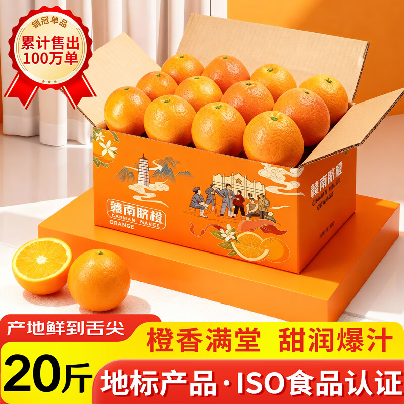 土八鲜江西橙子赣南脐橙新鲜水果赣州脐橙手剥甜橙礼盒 特级18.5-20斤【单果210-240g】