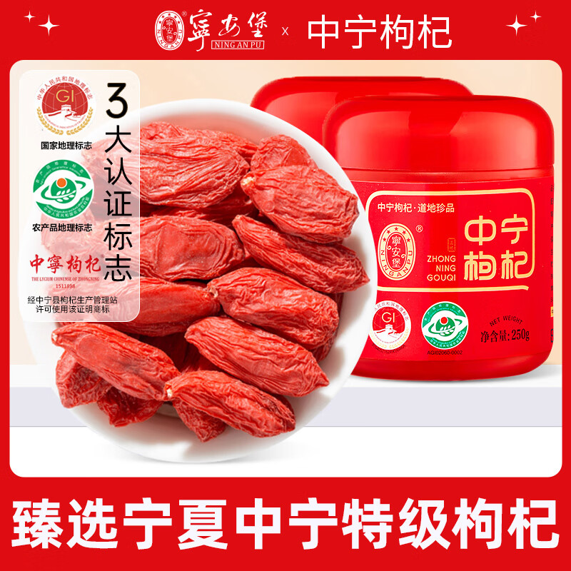 宁安堡红枸杞子 宁夏枸杞头茬中宁特优级无熏硫 大颗粒可即食 罐装滋补 【特级中果】250g*2罐