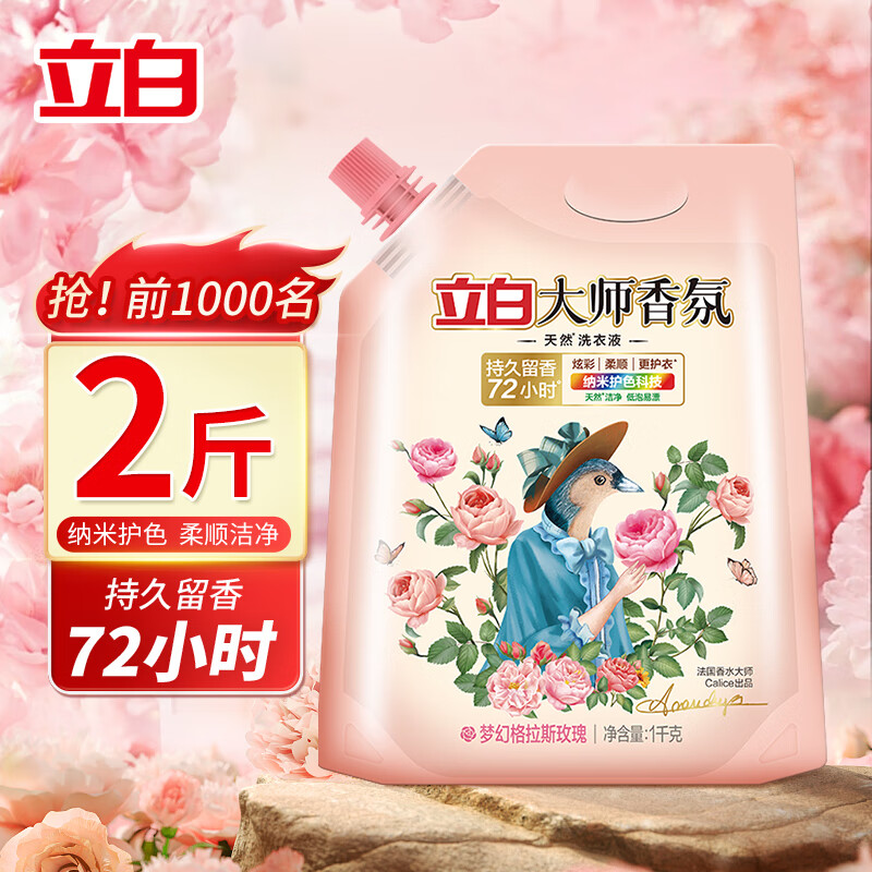 立白大师香氛香水洗衣液持久留香护衣护色柔顺洁净带导流嘴原装补充装 【梦幻玫瑰】 1kg*1袋 大师香氛液