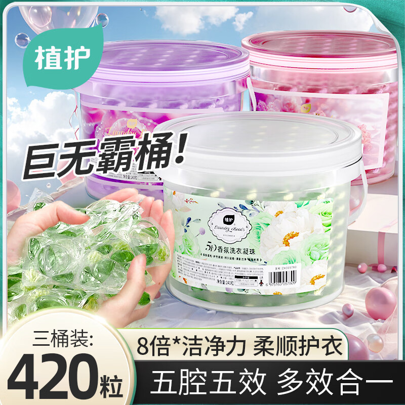 植护5D洗衣凝珠洗衣球 持久留香柔顺护衣香味速溶浓缩洗衣液 420颗3盒装