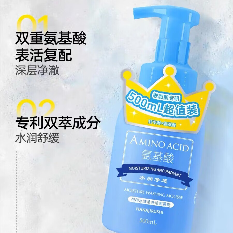 花印洗面奶女男士含氨基酸深层清洁泡沫洁面乳小样护肤品礼物 【敏感肌】水漾洁净洁面慕斯500m