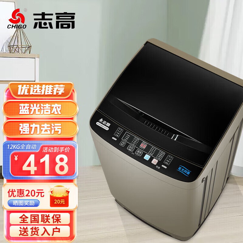 志高(CHIGO)全自动洗衣机 家用小型波轮 洗脱一体机大容量 公寓宿舍出租房 咖啡金 波轮 12kg 【蓝光洗护+风干洁桶+强电机】