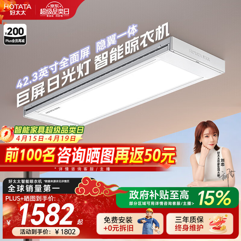 好太太电动晾衣机光影小天舱智能晾衣架家用阳台升降晾衣机 T30-ZL白色T:巨屏日光灯+航天联名+离线语音