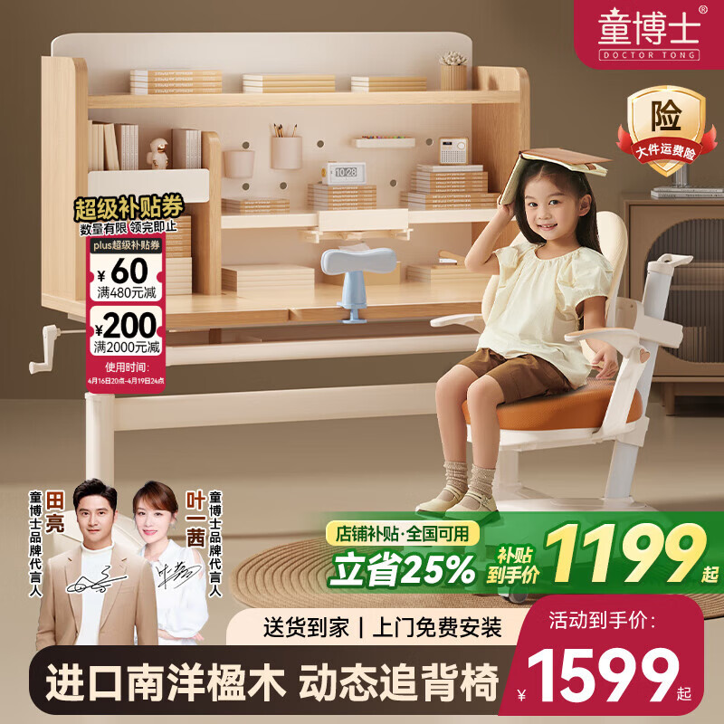 童博士儿童学习桌椅套装实木可升降写字桌小学生书桌课桌椅子阳光桌C12 1米实木桌套装+20cm追背椅 赠学习大礼包