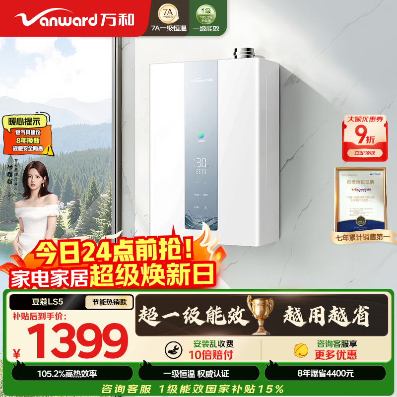 万和【豆蔻LS5 】16升天然气7A一级恒温 超一级能效大水量 节能静音 直流变频风机 燃气热水器 补贴15%