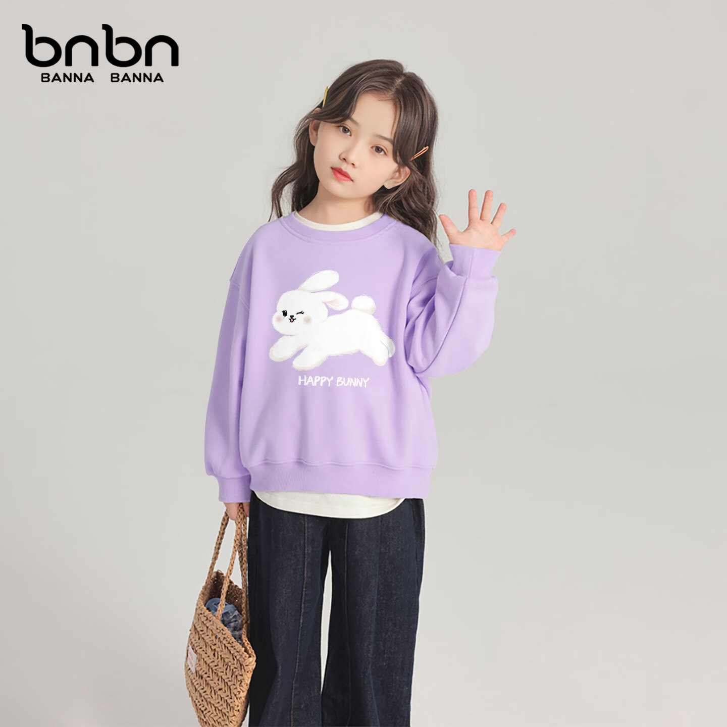 班纳班纳童装儿童卫衣套装2025新款秋季运动潮流宽松女童休闲裤男童上衣 N小白兔香芋紫 140