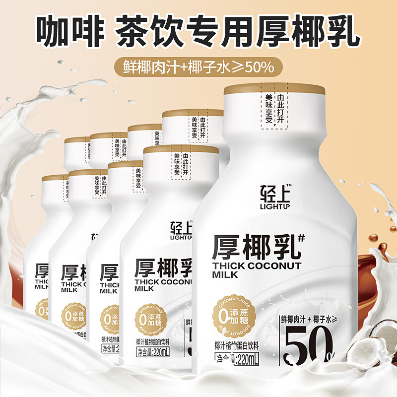 轻上【年货礼盒】轻上椰汁0糖生椰厚椰乳 植物奶蛋白饮料 厚椰乳220ml*6瓶
