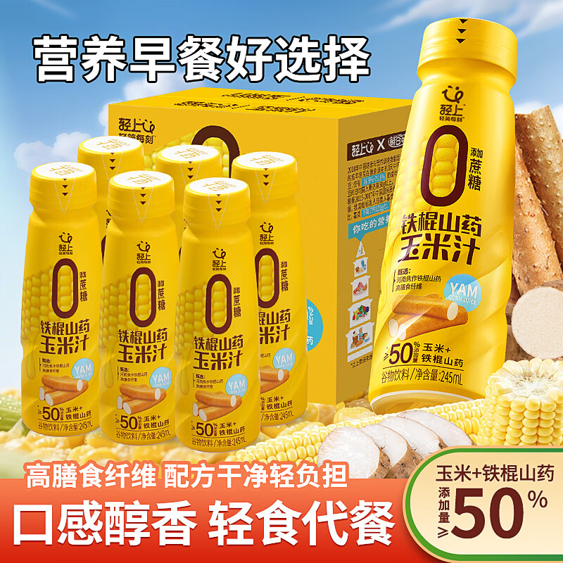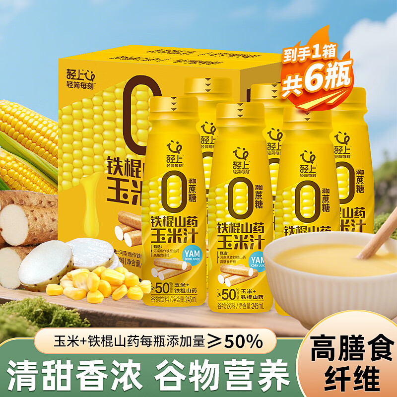轻上【年货礼盒】轻上椰汁0糖生椰厚椰乳 植物奶蛋白饮料 铁棍山药玉米汁245ml*6瓶