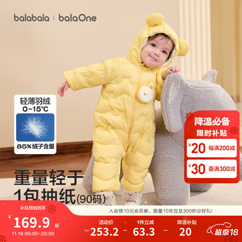 巴拉巴拉童装婴儿连体羽绒服轻薄羽绒服宝宝衣服2025冬装抱衣爬服男童女童 黄色雪人-白鸭绒 90 cm-充绒量47g