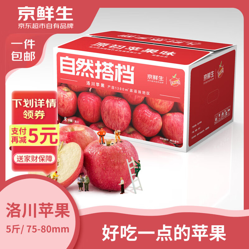 京鲜生 陕西洛川红富士苹果 净重5斤 单果75-80mm 源头直发