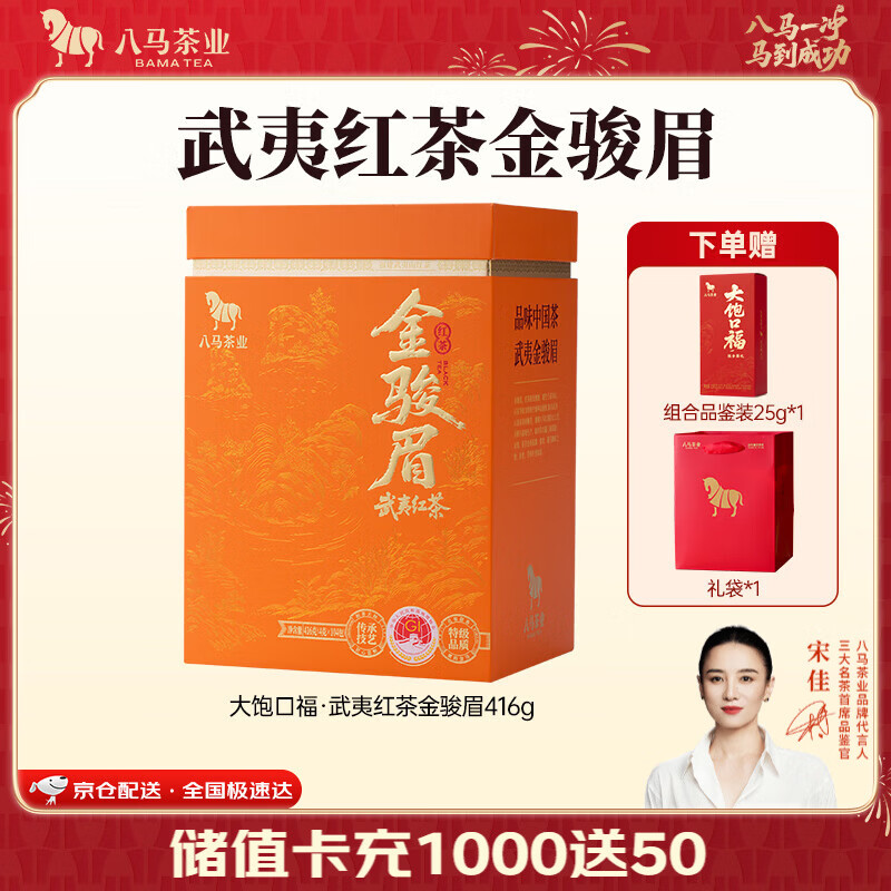 八马茶业 大饱口福 单丛鸭屎香 大红袍 金骏眉 冰岛普洱 送礼茶叶 礼盒装 【武夷红茶金骏眉】416g