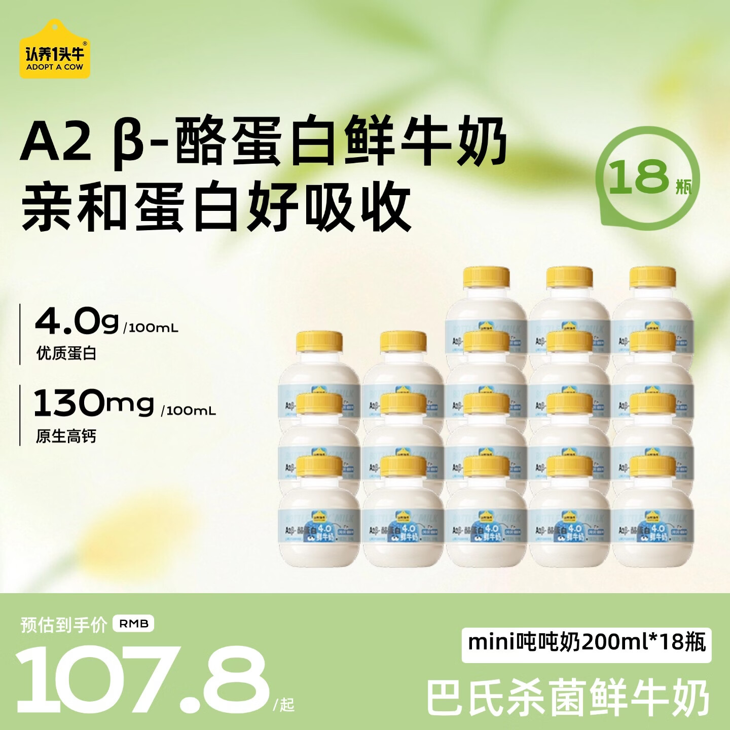 认养一头牛【代言人同款】mini吨吨奶A2β-酪蛋白4.0牛乳鲜牛奶营养儿童牛奶 mini吨吨200ml*18瓶