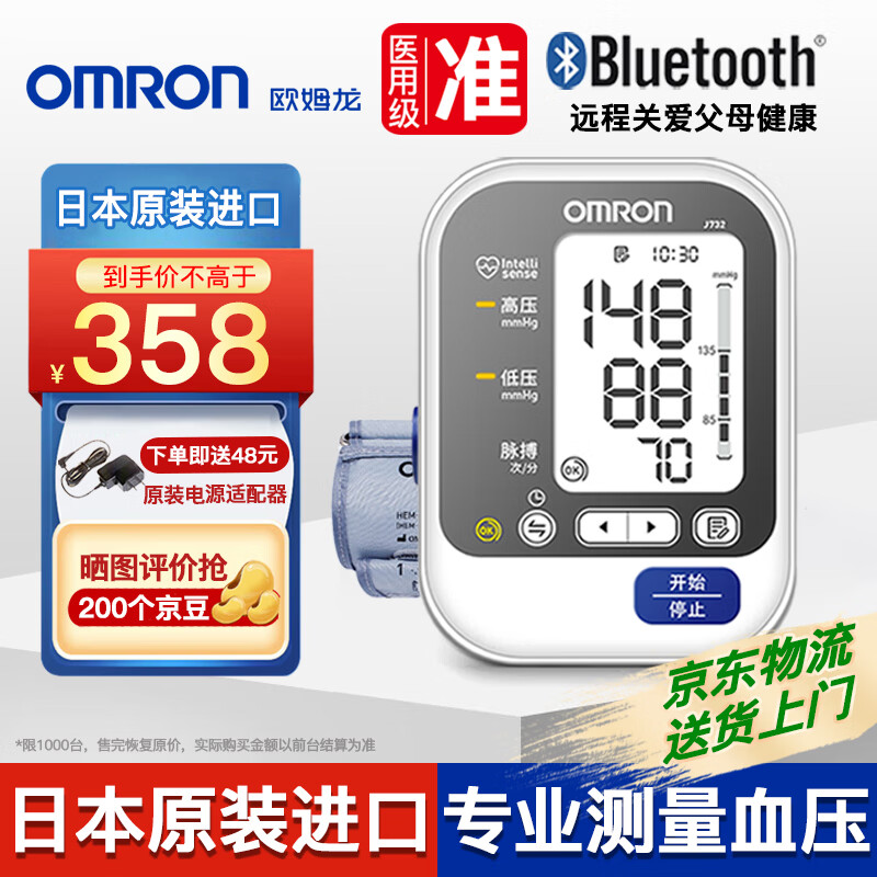 欧姆龙(OMRON)电子血压计 血压测量仪家用医用高精准血压仪 老人高血压测量仪器 【原装进口】J732+背光灯+蓝牙传输+手机APP