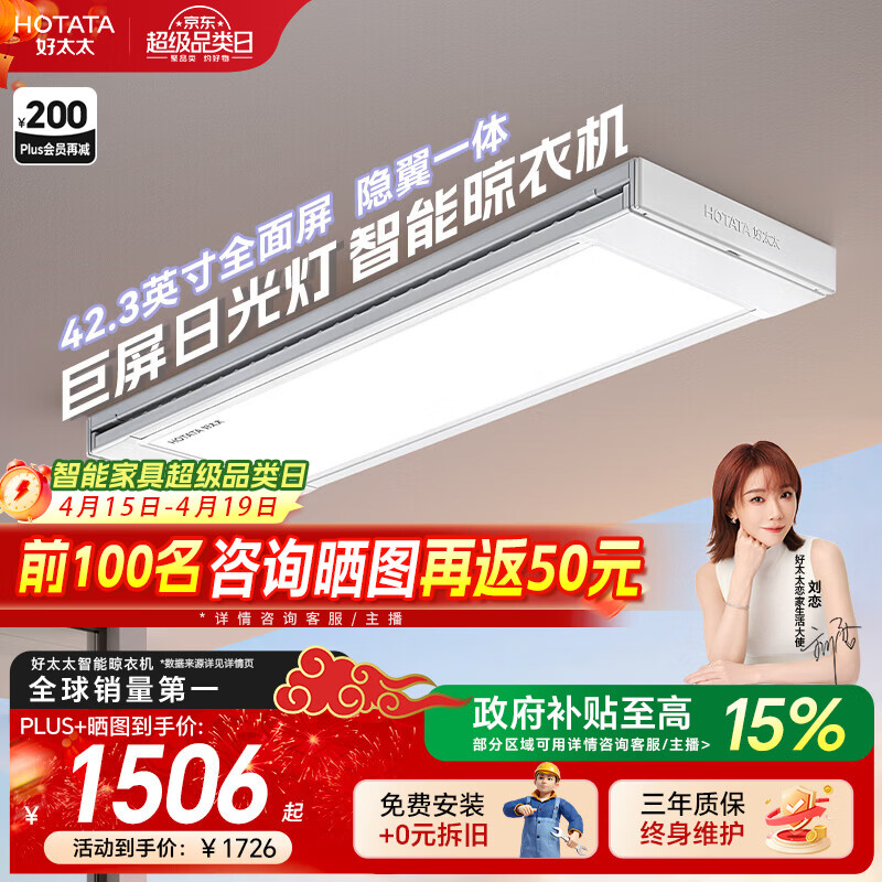 好太太电动晾衣架智能晾衣机隐形嵌入式全自动智能升降阳台伸缩晾晒衣机 T30Air-ZL:全屏日光灯+离线语音+衣被同晒