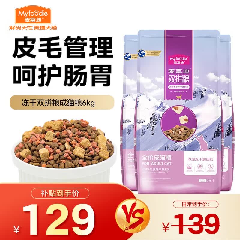 麦富迪 冻干猫粮 超肉粒冻干双拼粮(冻干三文鱼) 成猫粮6kg(2kg*3)