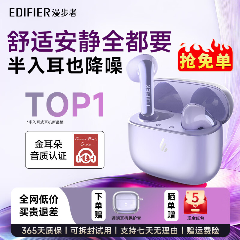 漫步者(EDIFIER)AtomANC 半入耳式原子豆ANC 主动降噪真无线蓝牙耳机 AI翻译 适配华为苹果小米2026年新品 流光紫