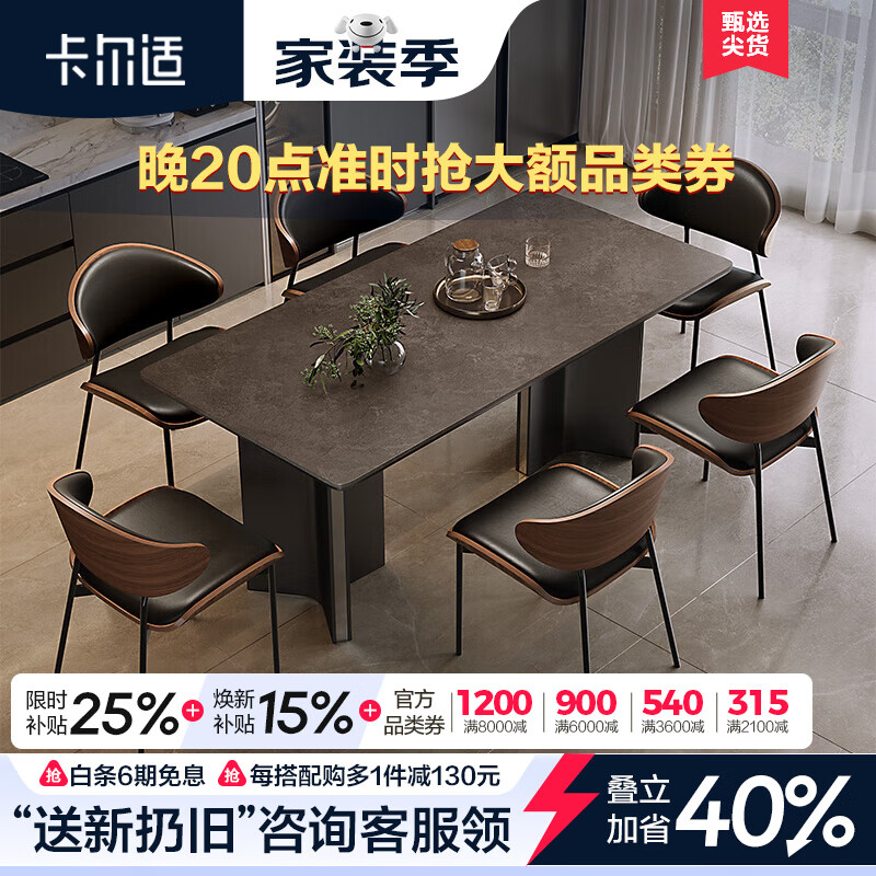 卡尔适轻奢极简岩板餐桌家用小户型现代简约金属长方形餐桌椅组合BN228 岩板餐桌【维克深灰】 140*80*75cm【全托底板】