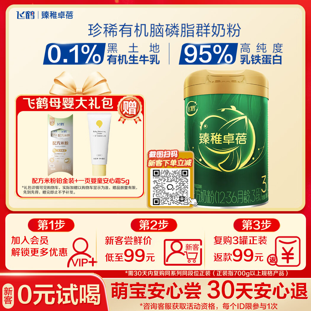 飞鹤【臻稚有机升级】【6种HMOs】臻稚卓蓓3段配方奶粉(1-3岁)300g