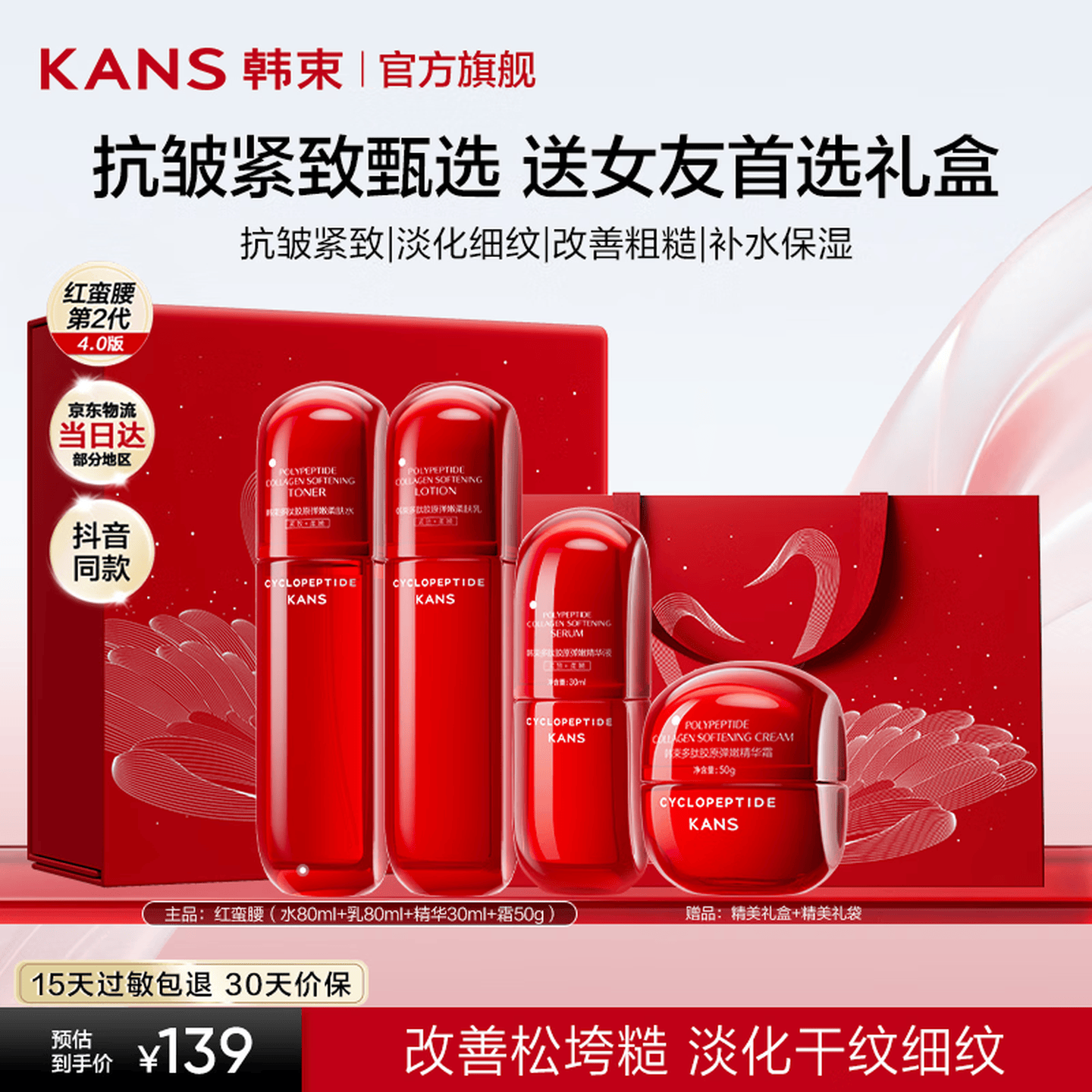 韩束(KanS)红蛮腰水乳护肤品套装抗皱紧致化妆品全套礼盒送女友妈妈生日礼物 【性价比优选礼盒】水+乳+精华+面霜