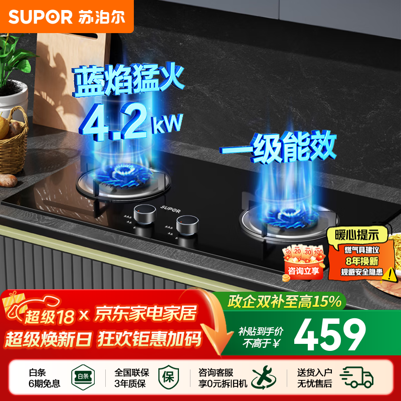 苏泊尔(SUPOR)燃气灶天然气双眼灶具台式嵌入式两用液化气灶家用节能炉具旋火蓝焰猛火一级能效熄火防护煤气灶 【出租优选】节能燃气灶NB05 【管道天然气12T】