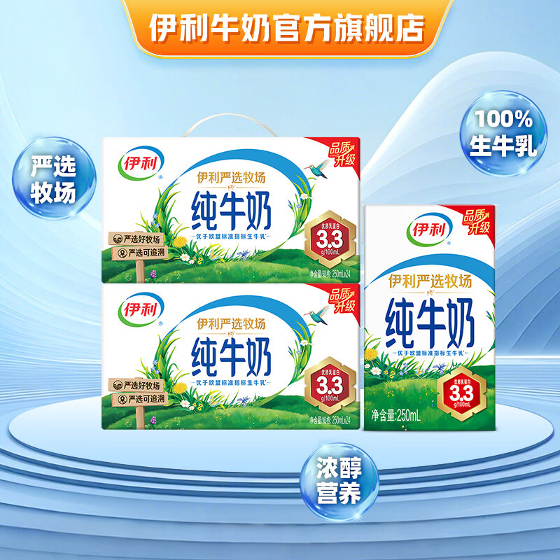 伊利牛奶系列 营养早餐搭配 优质乳蛋白 礼盒装 【送礼必备】严选牧场纯牛奶250ml*24盒*2提 1月产