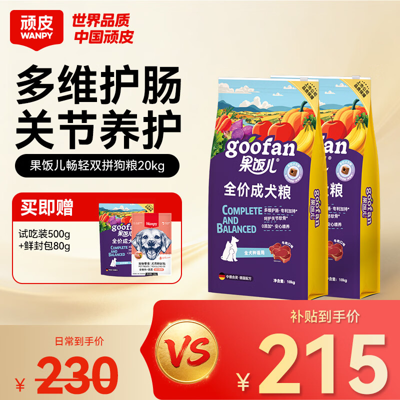 顽皮(Wanpy)果饭儿双拼犬粮添加鸡肉冻干拉布拉多比格宠物食品成犬幼犬专用 【配方优化】牛肉口味-20kg
