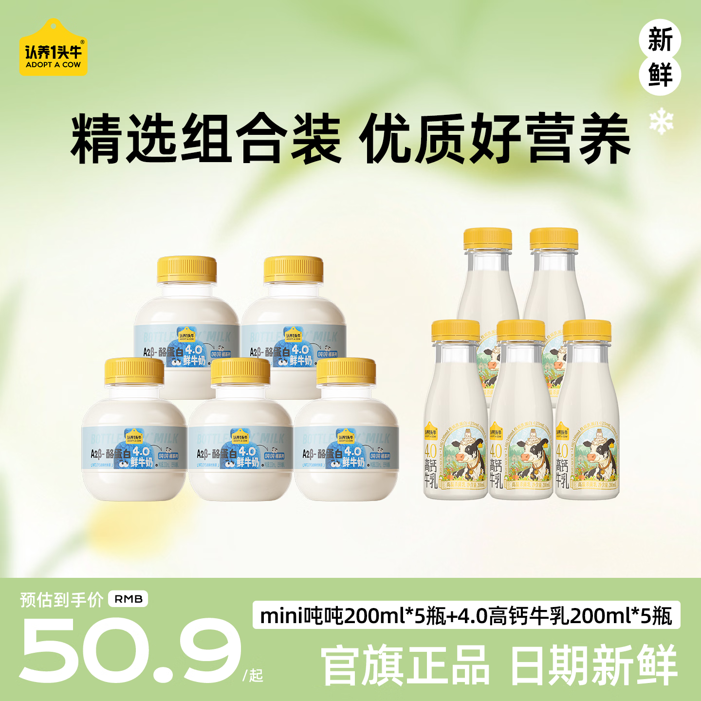 认养一头牛【代言人同款】mini吨吨奶A2β-酪蛋白4.0牛乳鲜牛奶营养儿童牛奶 【组合装】4.0高钙牛乳200ml*5瓶+mini吨吨200ml*5瓶