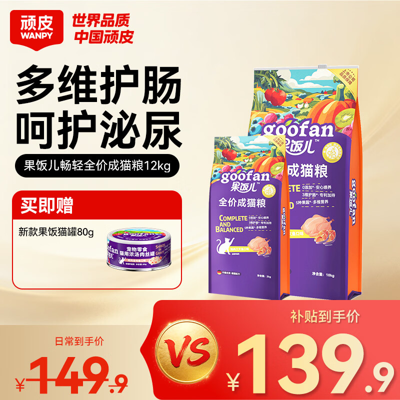 顽皮猫粮 果饭儿冻干双拼粮 出口级全价成猫粮全阶段幼猫粮 醇鲜升级 【囤货热销】鸡肉三文鱼成猫粮12kg