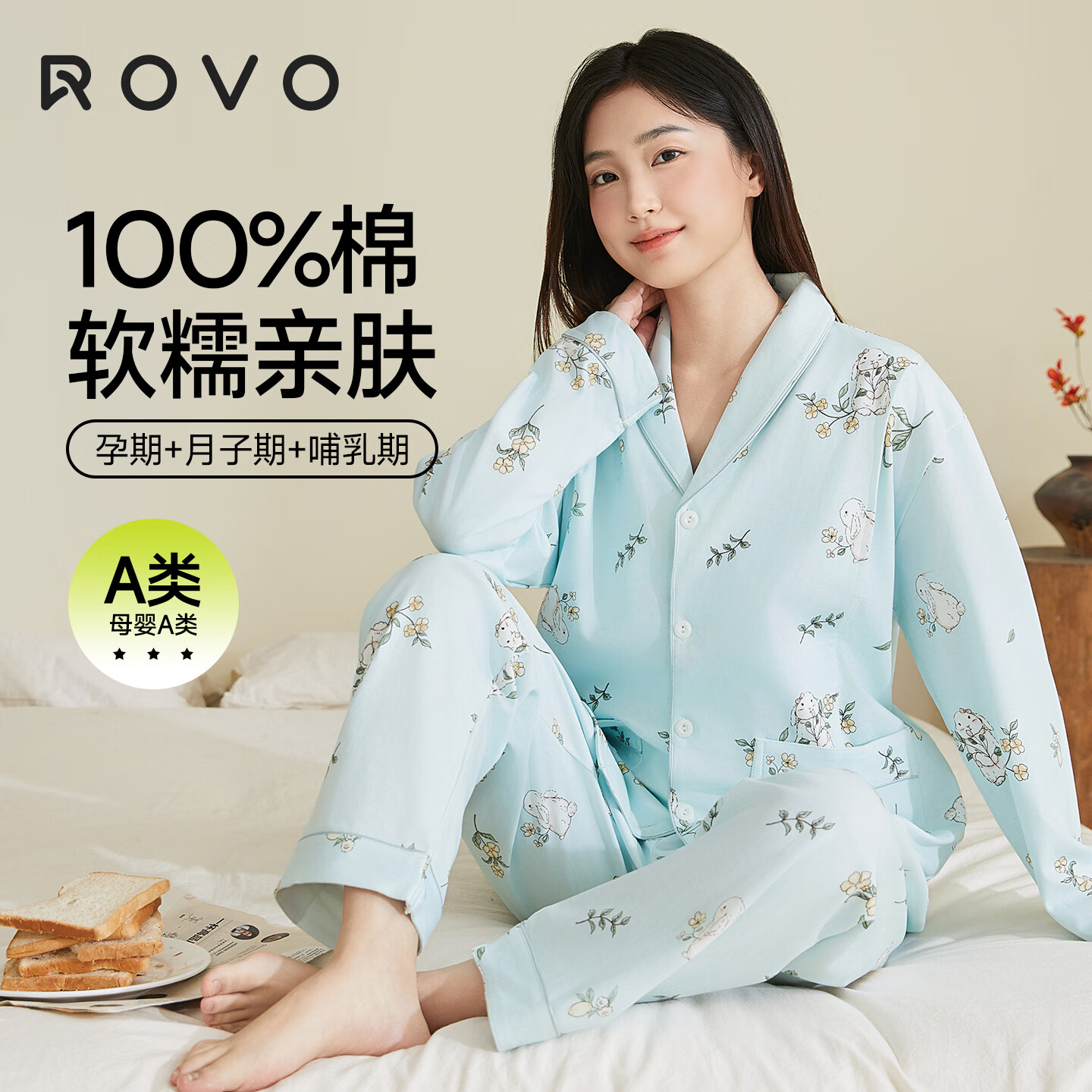ROVO纯棉月子服秋冬产后孕妇哺乳睡衣A类怀孕期产妇家居服套装 【四季180克】森系月季花(适用于15℃-23℃) L