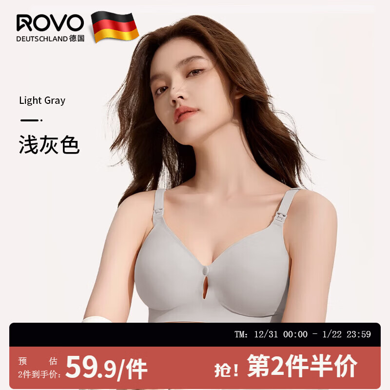 ROVO新款哺乳内衣双开扣便捷乳孕产后专用聚拢承托孕妇文胸罩 浅灰色 XL