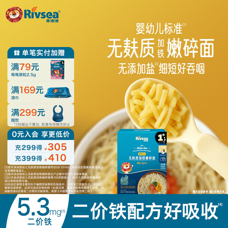 禾泱泱婴幼儿无麸质面条无小麦无蛋奶宝宝儿童无添加食用盐辅食面 【6-36个月无麸质丨二价铁配方】无麸质加铁嫩碎面160g