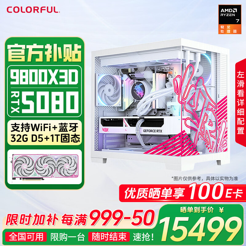 七彩虹RTX5080 5070 Ti主机AMD锐龙9800x3d台式diy组装电脑AI设计电竞游戏整机 配四:9800X3D RTX5080主机纯白海景房