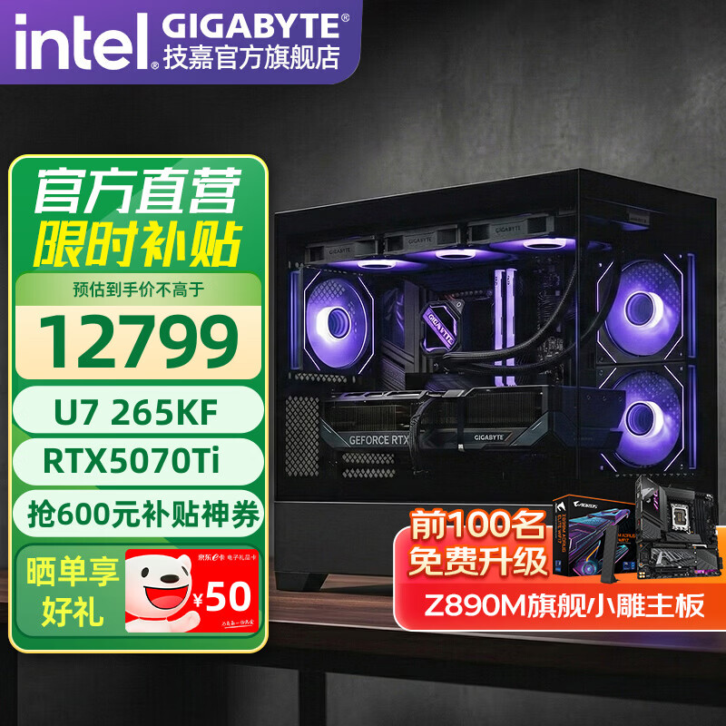 技嘉全家桶RTX5080/5070Ti/5060Ti/intel英特尔15代酷睿Ultra7 265KF电竞游戏发烧设计台式电脑主机 标准丨四:U7 265KF丨RTX5070Ti