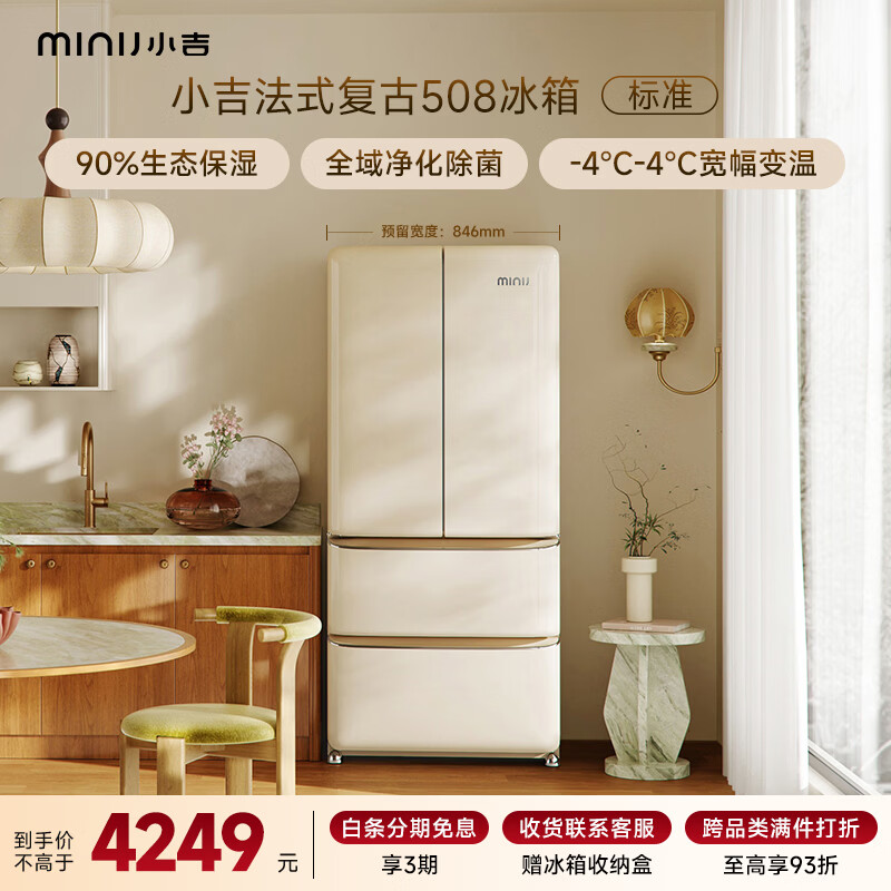 小吉(MINIJ)【年度机皇】复古508L法式多门冰箱嵌入式除菌净味一级能效风冷大容量奶酪白BCD-508WBS国家补贴