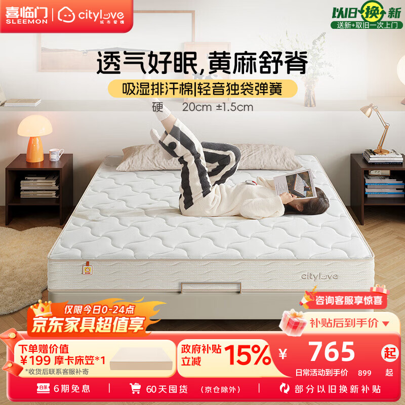 城市爱情喜临门床垫 偏硬0胶黄麻床垫独立弹簧双人硬床垫子席梦思大白垫H2 大白H2(偏硬款 黄麻舒脊) 1.5*2.0米