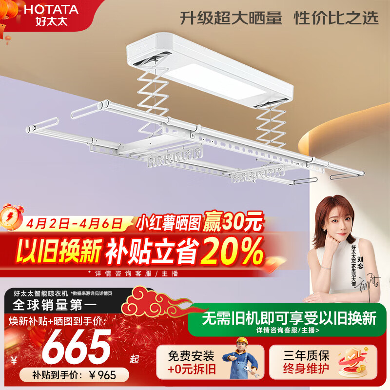 好太太(Hotata) 电动晾衣架智能自动升降晒被阳台晾衣架室外衣服架伸缩晾衣杆 【46孔大晒量】D11-Z白色