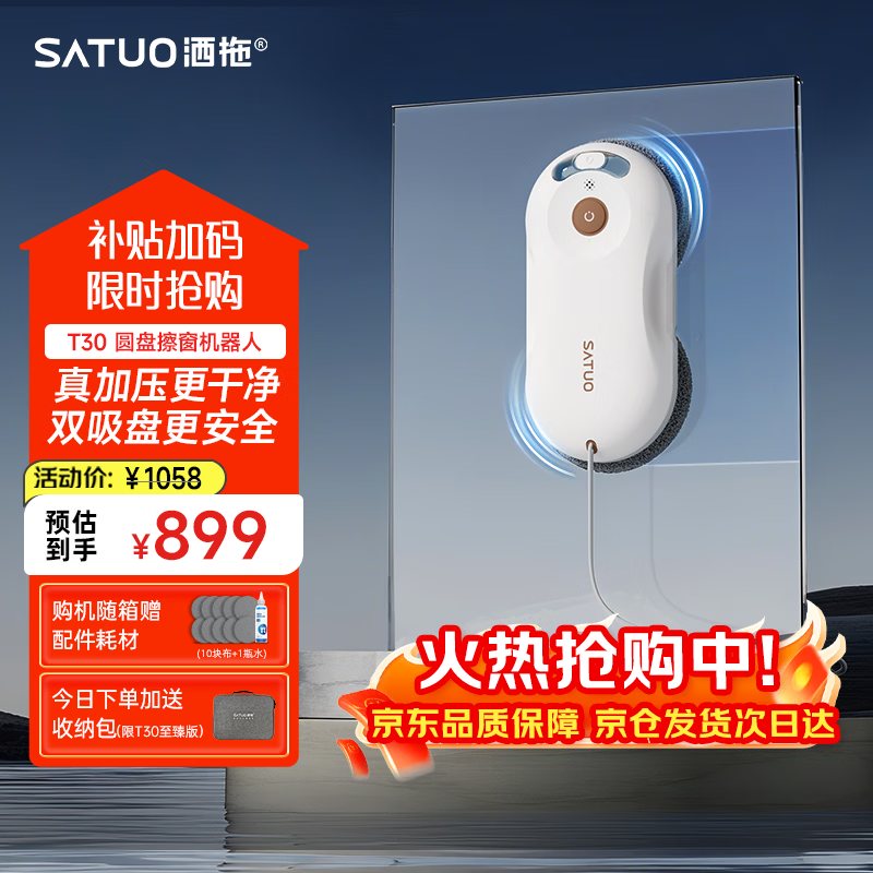 洒拖(SATUO)T30擦窗机器人 家政专用擦玻璃神器 洒脱高层户外智能喷水擦玻璃窗机器人 至臻版-百元机皇-极致性价比