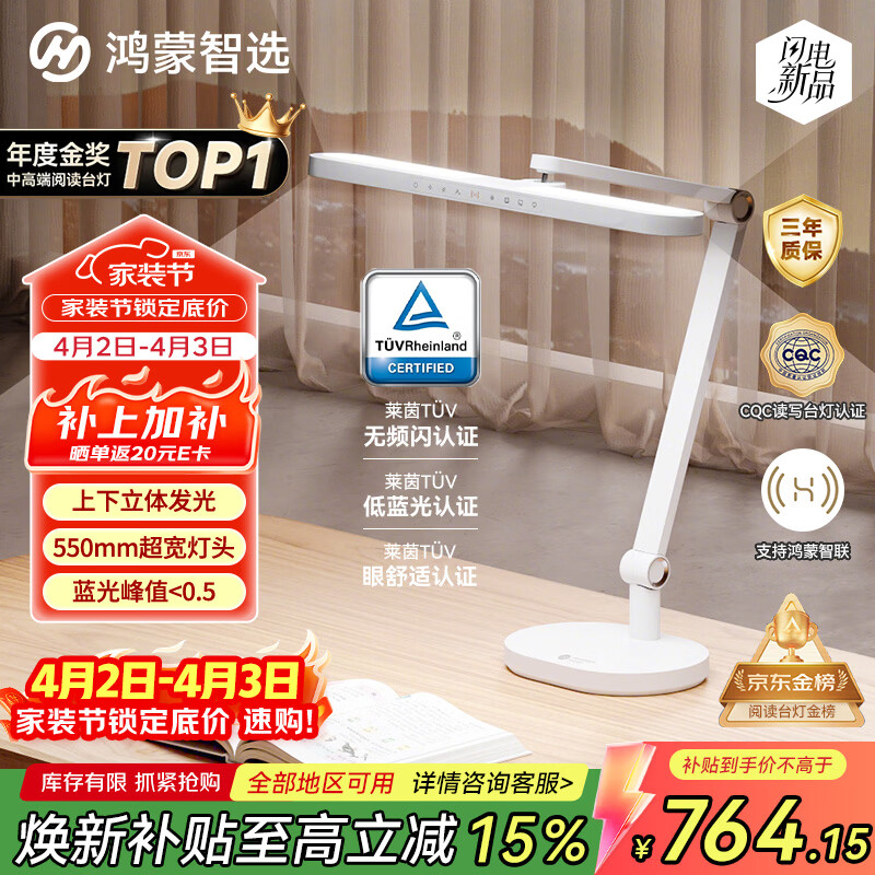 鸿蒙智选THINCO智能护眼台灯学习学生防蓝光防近视全光谱感应灯5Ultra