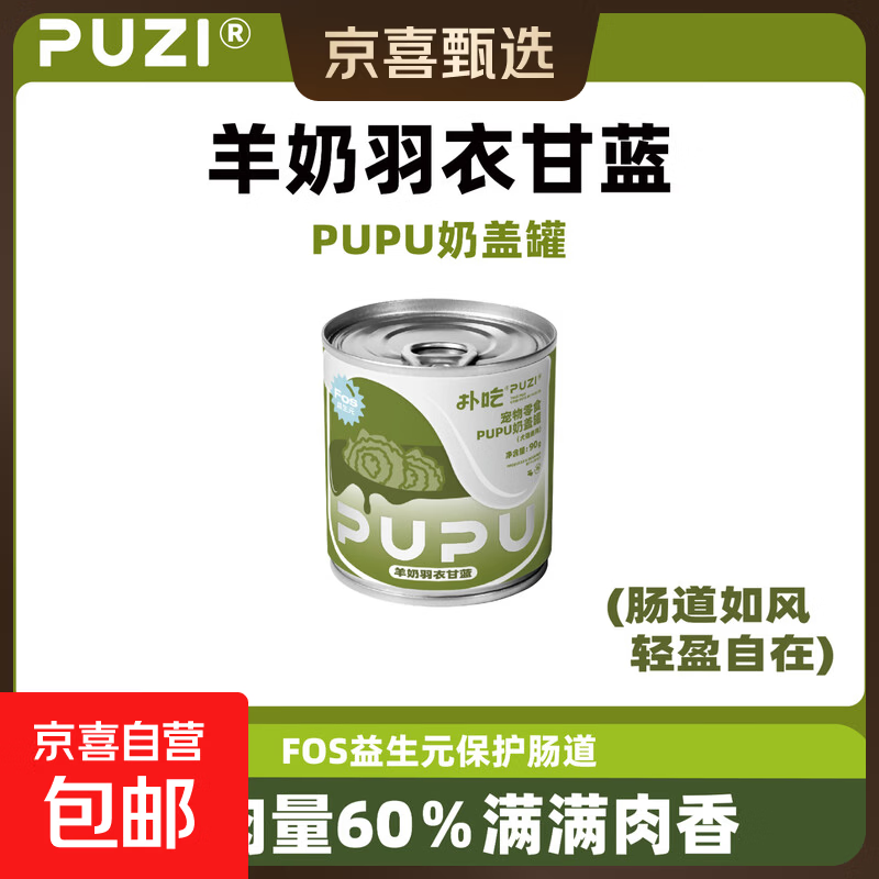 PUZI扑吃奶盖罐猫狗通用猫罐头狗罐头奶昔罐头猫咪狗狗零食90g 羊奶羽衣甘蓝 1罐
