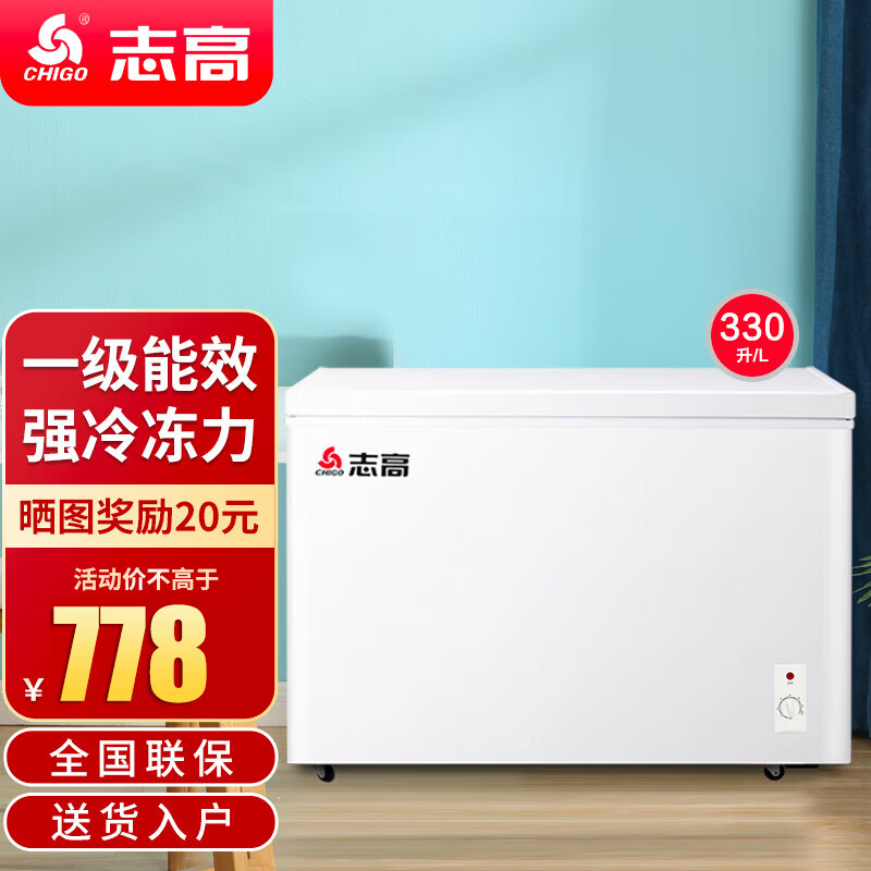 志高(CHIGO)小冰柜家用冷冻小型一级节能省电迷你卧式冷藏保鲜储母乳冷柜 【一级能效 全国联保】 330L 单温单门