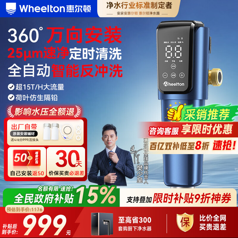 惠尔顿(WHEELTON)万向前置过滤器全自动清洗反冲洗防爆15T大流量电动刮洗全屋家用净水器自来水入户滤水器P0063PLUS