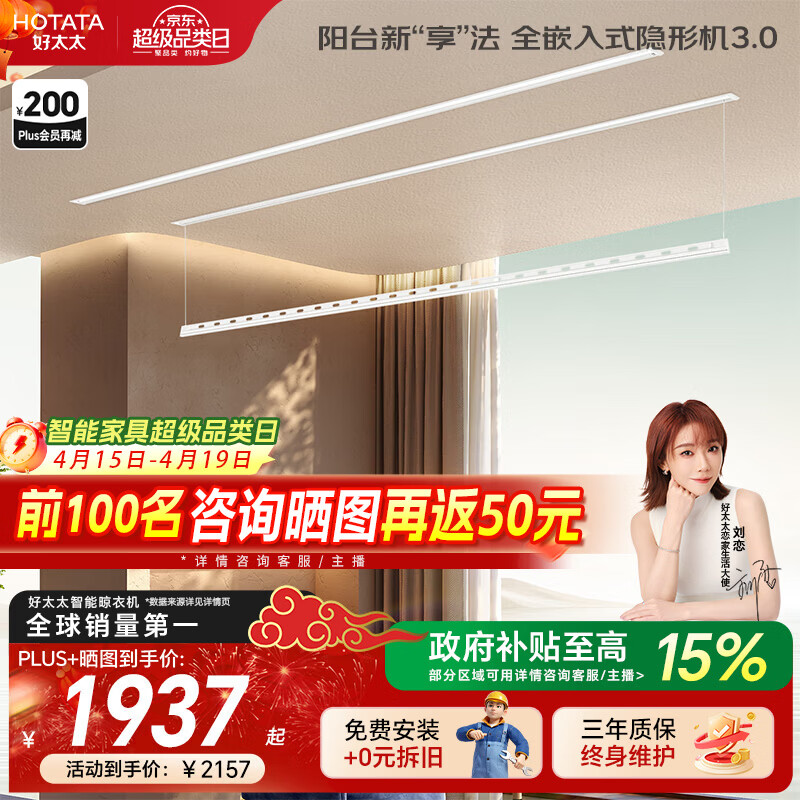 好太太隐形晾衣架电动晾衣机隐藏式自动智能升降阳台嵌入式晒衣架 D-3207:2.4米双杆被杆+离线语音